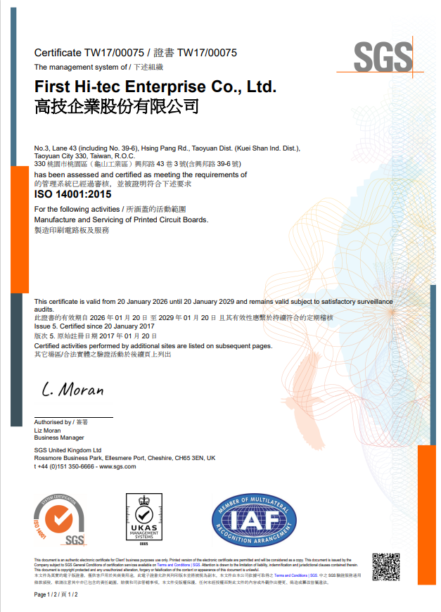 通過ISO 14001:2015環境管理系統SGS認證 |